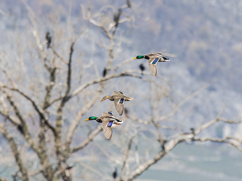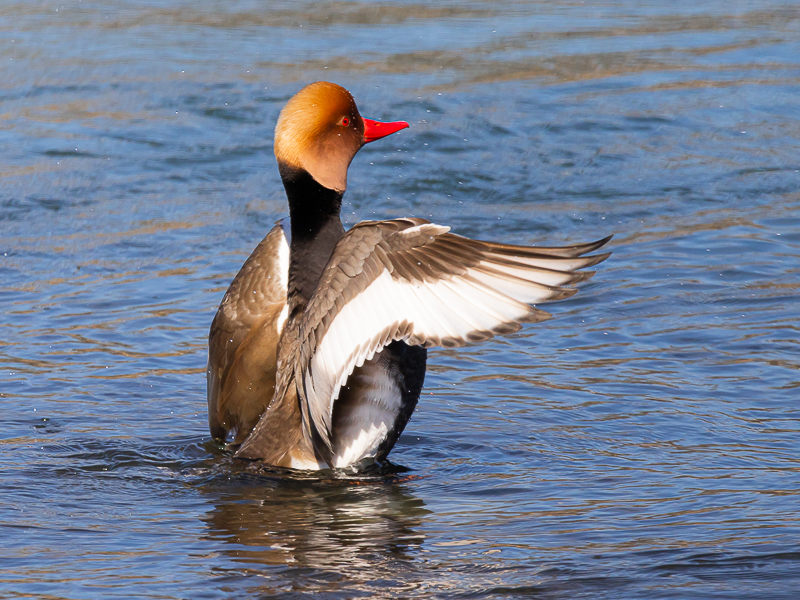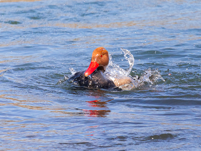 Grangettes. Le lac est parsemé de boules de Noël aux couleurs des robes nuptiales de quelques siffleurs et chipeaux, nombreux souchets et pilets, et innombrables milouins et colverts. Sa surface arbore une guirlande brune de femelles hivernantes.
