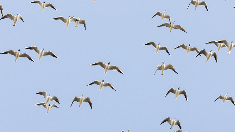 La liste des Laridés est elle aussi bien étoffée, quelques Goélands cendrés et bruns se cachant parmi les innombrables leucophées. Au-dessus des îles, une discrète et petite mouette au vol élégant vient par ailleurs allonger la liste: la Mouette pygmée.