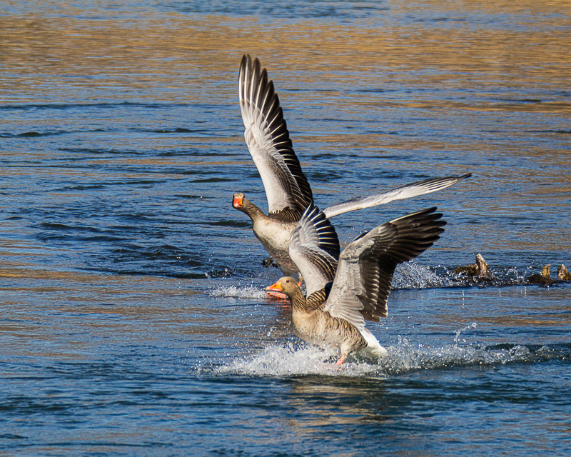 Arrivé vers l'ancien barrage électrique, dans la forêt riveraine les Hérons cendrés, deux Milans noirs et les grands Cormorans construisent leurs nids. Sur le canal menant au lac depuis l'ancien barrage, six Oies cendrées défendent leur petit îlot pour y nicher, deux mâles Nettes rousses paradent pour gagner la faveur d'une femelle comme les Canards colvert, les Bergeronnettes grises et des ruisseaux cherchent des matériaux pour leur nid. Au niveau de la roselière entre le port de Täuffelen et Hagneck, deux Busards des roseaux la survolent. Arthur le Balbuzard pêcheur, qui est de retour depuis environ dix jours, se fait discret. Au bout de deux heures et demi d'attente, il fit une apparition furtive au-dessus du barrage avant de repartir sur l'Aare direction Aarberg.