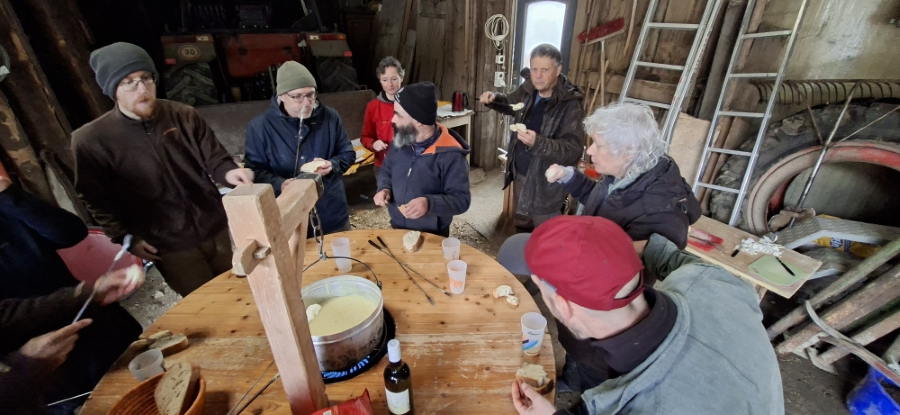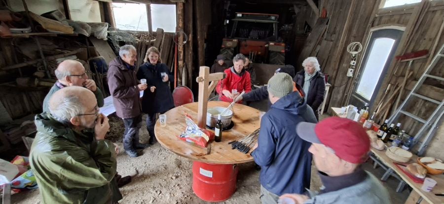 17 : La fondue se met en place dans la grange de Valéry que l'on remercie pour son accueil.