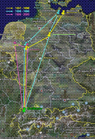 carte ci-joint illustre les pérégrinations de celui qu'il nous faut bien
