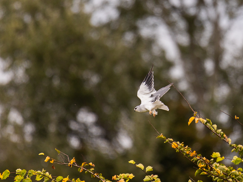 Sur le chemin du retour, j'ai pu revoir dans le même secteur l'Elanion blanc, que j'avais observé le 21 septembre. Je ne pensais pas avoir la chance de l'observer, suite à la tempête et à la baisse des températures.
