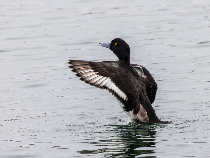 On m’avait dit dernièrement (Merci Benjamin Gygax) qu’il y avait un Fuligule à tête noir (Aythya affinis) dans le port de Neuchâtel ou aux abords. Chaque année ou presque, il en arrive un ou deux exemplaires de cette espèce en Suisse ; c’est un « accidentel ». Donc, le déplacement s’impose.