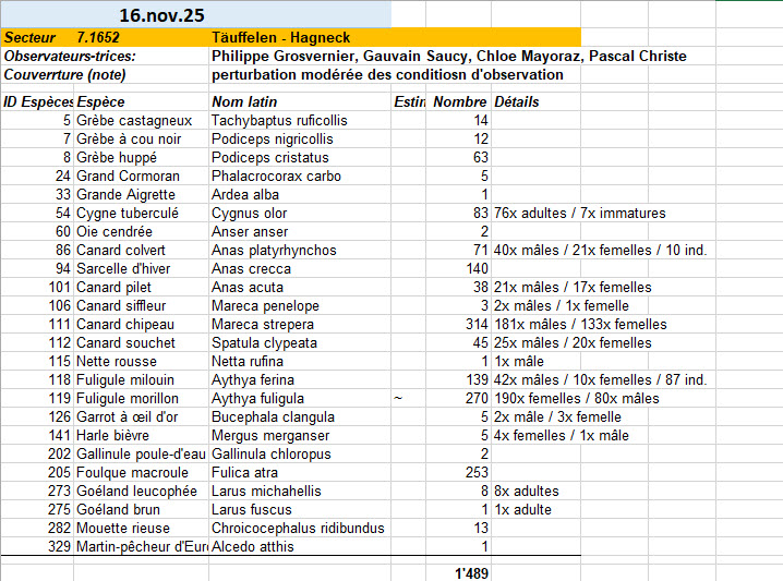 Samedi 16.11.2025 : Recensement des oiseaux d'eau (lien vers fichier Excel)