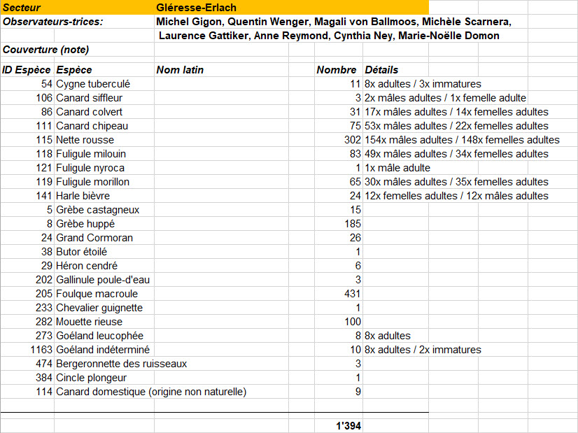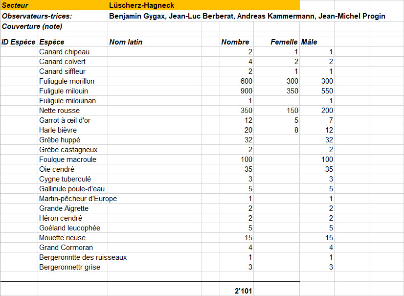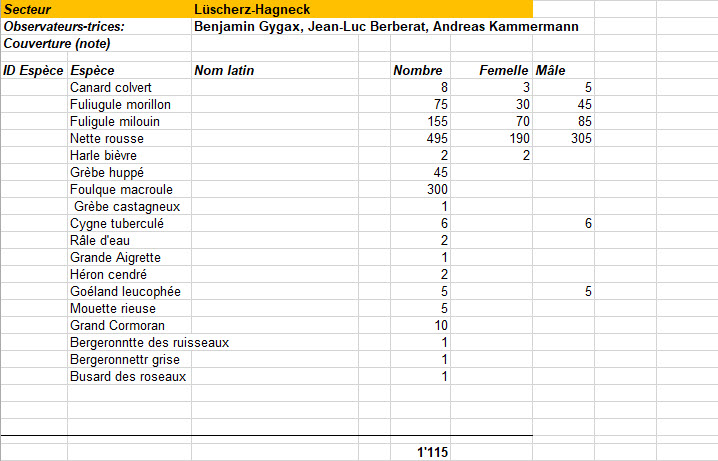 Samedi 11.01.2025 : Recensement des oiseaux d'eau (lien vers fichier Excel)