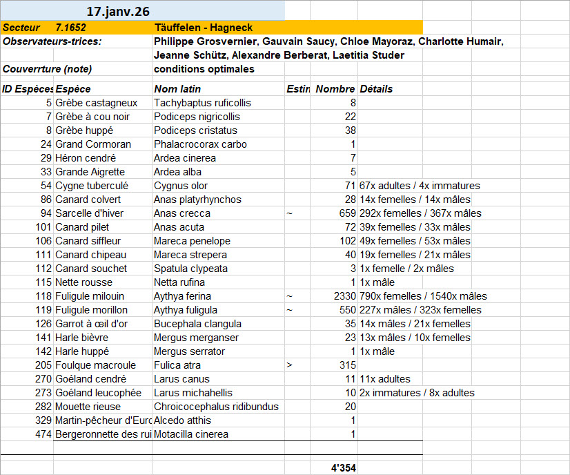 Samedi 17.01.2026 : Recensement des oiseaux d'eau (lien vers fichier Excel)
