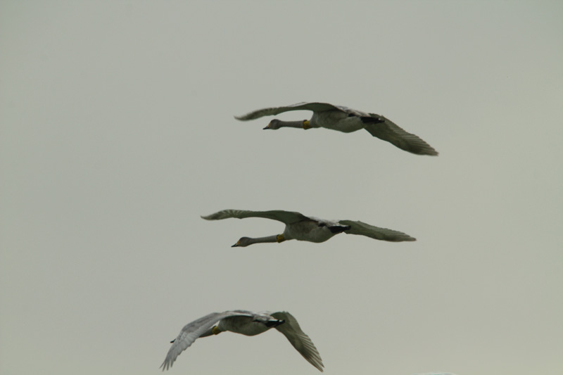 Voici un complément de la sortie au lac de Bodensee. Ces trois jeunes cygnes chanteurs (voir photos en bas de la page), que nous avons pu observer en vol, ont été bagués au cou avec des bagues jaunes avec les inscriptions suivantes: 7R65; 7R66 et 7R67. J'ai envoyé ces données à la station ornithologique Suisse et deux jours après je reçois une réponse d'Allemagne. Ces trois jeunes ont été bagués à Obersprrewald-Lautziz, au sud de Berlin. Le Spreewald est le site de nidification du cygne chanteur le plus proche de la Suisse. Ils ont parcouru environ 600 kilomètres depuis leur lieu de bagage jusqu'au lac de Bodensee. Longue vie à eux. Lien sur le fichier pdf de leur parcours.