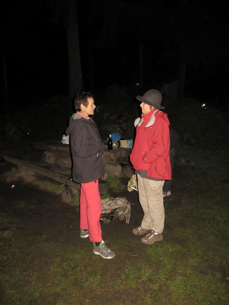 Un petit groupe de huit éclaireurs a décidé de prendre les devants pour aller réserver la place de grillade. Arrivé vers 14 heures, la température était agréable et le soleil légèrement voilé. Il n’a pas fallu attendre longtemps pour entendre les premiers brames et de voir furtivement un Aigle royal. Nous avons profité de cette fin d’après-midi en allant nous dégourdir les jambes le long du vallon. Vers 17heures, dix autres cépobiens nous ont rejoints. Dès ce moment, nous nous sommes mis en marche vers le milieu du vallon, où l’on a pu voir et entendre les cerfs répéter leurs gammes et apercevoir aussi quelques biches. Le long du chemin, dans les prés, il y avait des bauges avec de magnifiques empreintes de cervidé. Suite à un SMS reçu par Magali et un regard sur le Niesen, le ciel ne nous promettait rien de bon pour la soirée et nous sommes retournés gentiment à la place de grillade où le feu crépitait déjà. Malgré quelques gouttes de pluie, la soirée s’est terminée dans la bonne humeur, avec une grille bien remplie, des essais de minutes de silence pour entendre le brame et de bon fou-rire, …