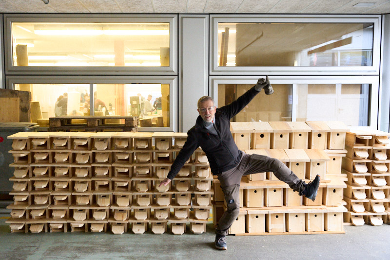 Et de faire le pitre en posant les nichoirs pour la photo finale.