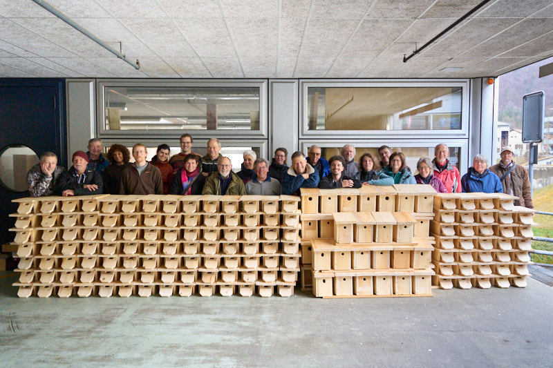 Belle photo de famille avec pas moins de 132 nichoirs à Martinet et 44 à passereaux.