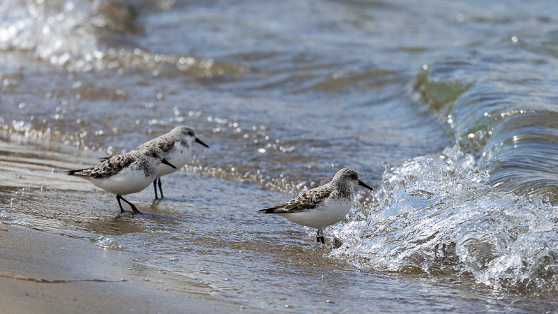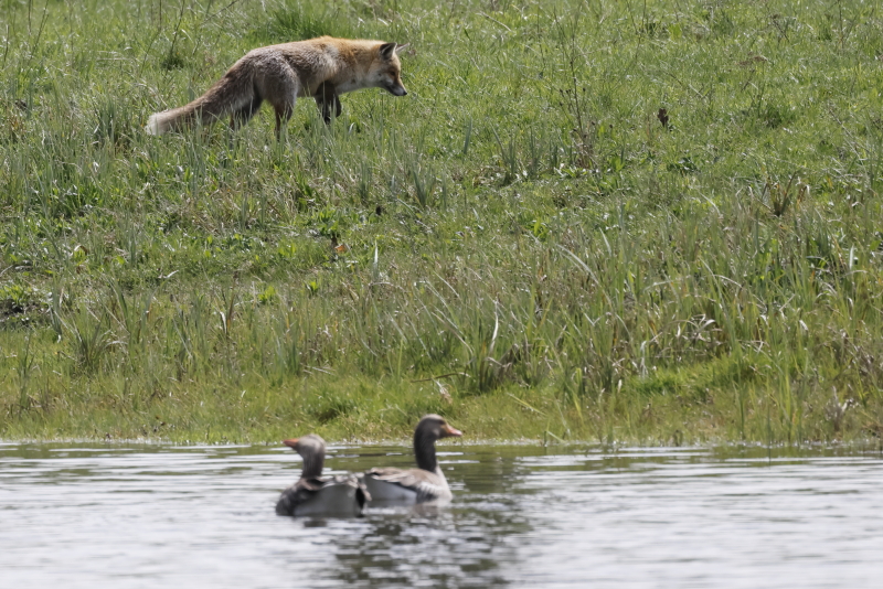 Au sud, une grande surface laisse apparaître des bancs de sable. J’y recense : canards colvert, chipeau, pilet, siffleur et souchet ; Corneille noire, Cygne tuberculé, Oie cendrée, Courlis cendré, 1 Chevalier arlequin, 1 Goéland brun.
