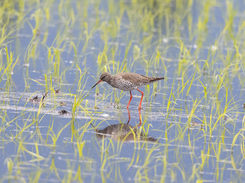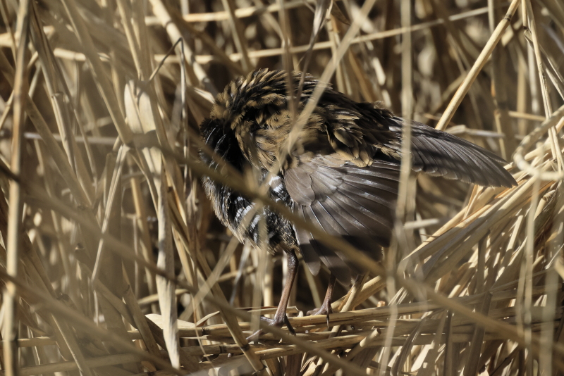 Dans la roselière, j'ai pu entendre deux ou trois sangliers qui ont levé trois Bécassines des marais. Il y avait aussi deux grandes Aigrettes, deux Râles d'eau, trois Bruants des roseaux, un Busard des roseaux, cinq Panures à moustache, un Martin-pêcheur perché sur un roseau et un Butor étoilé.