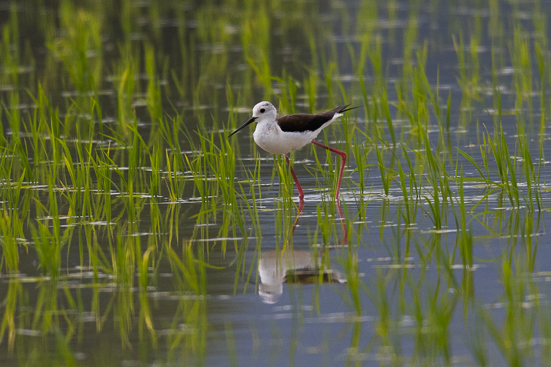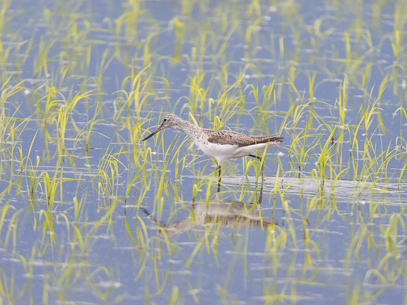 Au niveau des étangs, j'ai pu observer une grande Aigrette, quatre Hérons cendrés, deux Sarcelles d'été, une Gallinule poule-d'eau, un Grèbe castagneux, un petit Gravelot, deux Chevaliers sylvain, deux Chevaliers guignette, un Chevalier culblanc et trois Bécassines des marais.