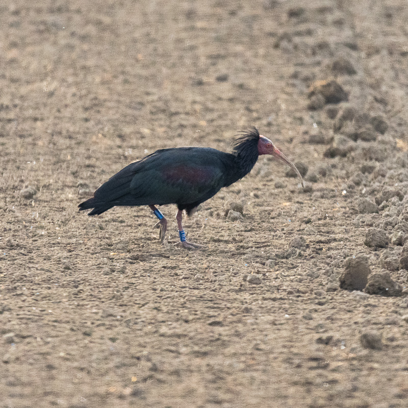 Malgré le brouillard bas tenace, je me suis rendu à la Krümmi. J'y ai entendu un Milan royal et un grand Corbeau. Sur les étangs, j'ai pu observer quatre Fuligules milouins, quelques Foulques macroule et Canards colverts, deux Canards siffleurs, six Sarcelles d'hiver et trois Bécassines des marais. Et tout à coup une Grue cendrée a fait son apparition, elle tourna sur les étangs, puis alla se poser un peu plus loin dans un champ de maïs fraîchement labouré pour s'y nourrir.