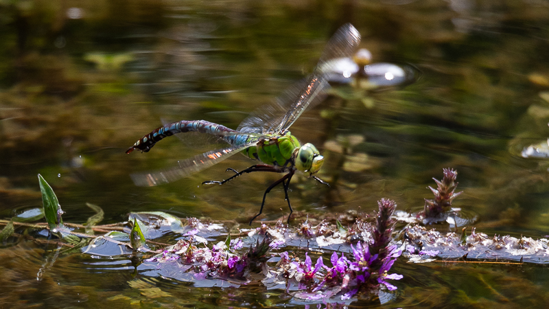 Parmi les roseaux, tout proche, un Râle d’eau donne de la voix. Près de moi se montre une petite troupe du Pipit spioncelle. Le Martin-pêcheur passe 4 fois au ras de l’eau. Plus loin « patrouille « la femelle du Busard des roseaux.