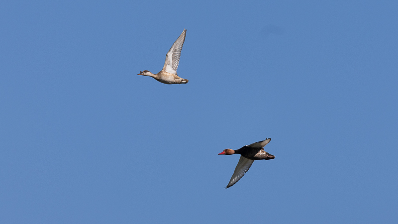 Puis je me suis dirigé à l'ouest de Morat, juste avant le village de Faoug, dans un champ j'ai pu y observer septante huit Oies cendrées et une Buse variable. Depuis cet endroit, je jette un coup d'œil du côté du lac de Morat, pour y observer un groupe de Canards composé de Nettes rousses, Fuligules morillon et Fuligules milouin.