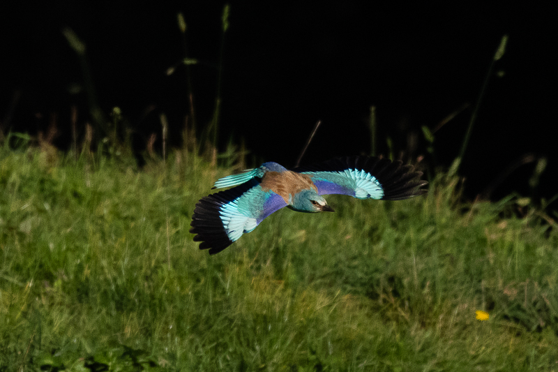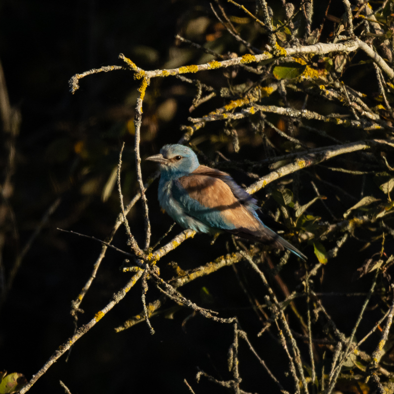 Voilà environ un mois, un Rollier d'Europe passe son automne du côté de Bütschwil, au sud de Lyss. Je suis allé l'observer régulièrement depuis le 22 septembre 2024. Ce 20 octobre 2024, il est toujours présent autour de ce petit village et il a l'air de se plaire dans ce petit coin, car il y trouve à manger tel que coléoptères et chenilles. Sinon j’ai pu y observer deux Milans royaux, un Faucon crécerelle, trois Rougequeues noirs, quelques Mésanges charbonnières, un Grimpereau des jardins, un Pic vert et quatre Geais des chênes.